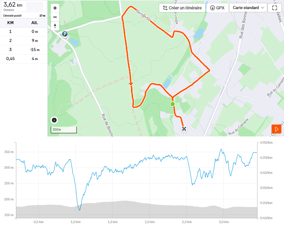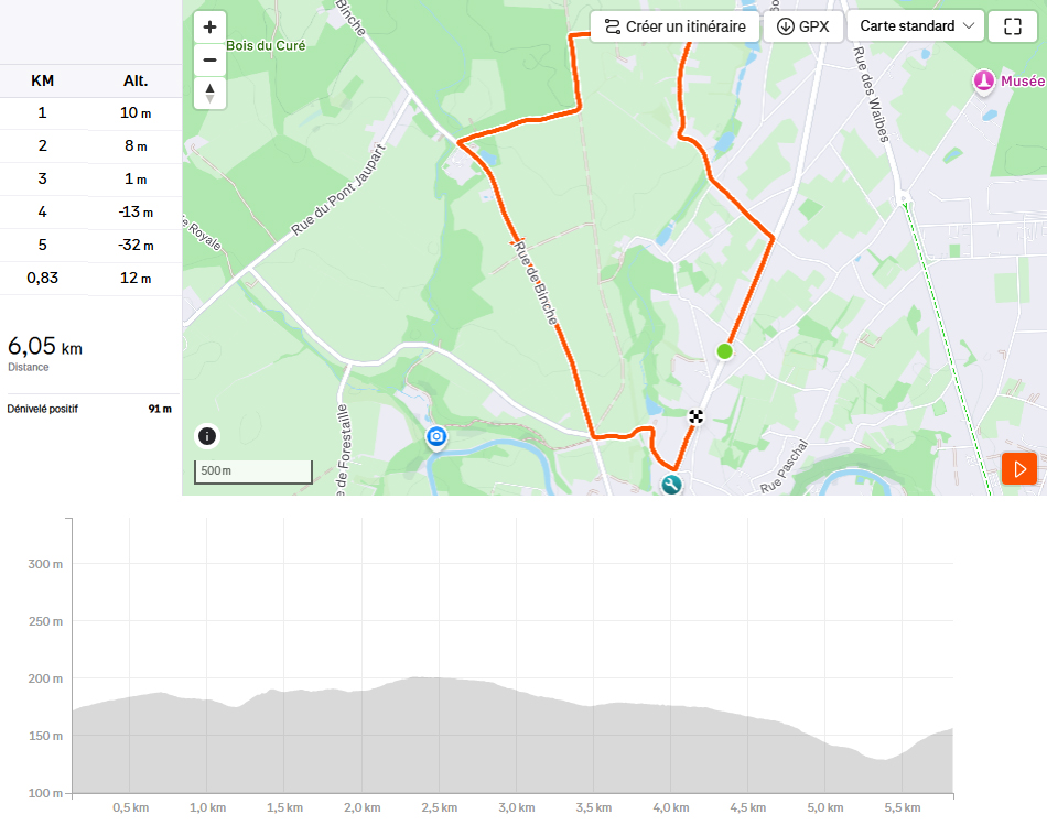 6 km (Fichier GPX disponible ici). Parcours modifié